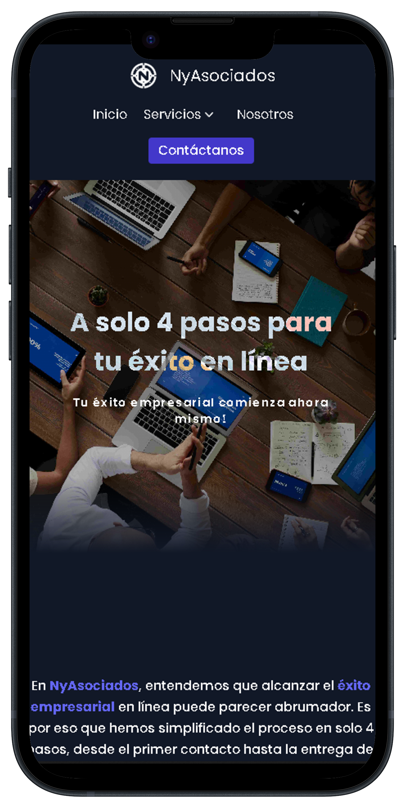 En NyAsociados, entendemos que alcanzar el éxito empresarial en línea puede parecer abrumador. Es por eso que hemos simplificado el proceso en solo 4 pasos, desde el primer contacto hasta la entrega del proyecto final. Nuestro enfoque meticuloso y orientado al cliente garantiza que cada paso sea una experiencia sin complicaciones y satisfactoria.